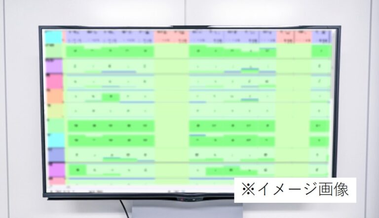 また、現場に5台の大きなディスプレイを置き、FLEXSCHE Viewerを用いてスケジュール画面の表示を行ったことで、現在の作業だけでなく、将来的な繁忙時期などがいつでも確認できるようになり、現場での作業の見える化が実現した。